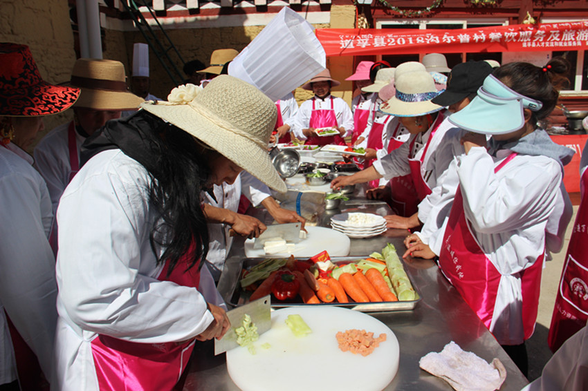 該村立足地處公路沿線的優(yōu)勢,緊抓成都師范學(xué)院幫扶機(jī)遇,在深入調(diào)研凍坡甲實(shí)際情況后,依托農(nóng)牧民夜校,層層選拔有意愿的村民開展旅游禮貌用語、儀容儀表及禮儀規(guī)矩等方面的培訓(xùn),村上成立了村舞蹈隊(duì)、合唱隊(duì),去年村上舉辦了第一屆達(dá)瑪花節(jié),建成了村上的精品鄉(xiāng)村民宿,同時由村民所郎尼瑪收徒學(xué)習(xí)民居內(nèi)部裝飾,開辟了青年轉(zhuǎn)移就業(yè)的新途徑,每人月均可收入達(dá)1000余元,實(shí)現(xiàn)脫貧致富。