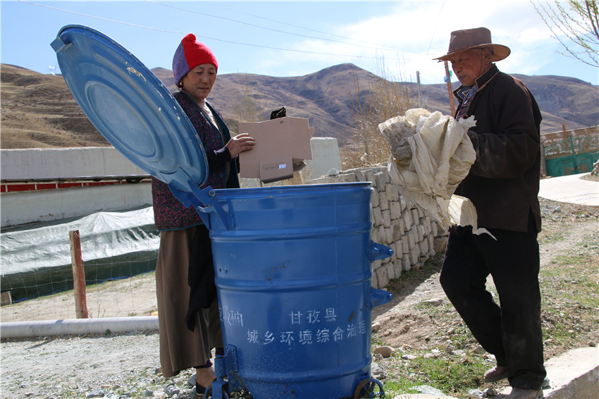 本網(wǎng)訊(謝臣仁 文/圖)近日,甘孜縣南多鄉(xiāng)青卡村村民正在投放垃圾。在開展精準(zhǔn)扶貧中,該縣注重抓好清潔衛(wèi)生工作,在鄉(xiāng)村安置垃圾桶,對垃圾進行集中回收,讓“清潔理念”在村民中入腦入心見行動,形成了好風(fēng)氣,改變了村容村貌。