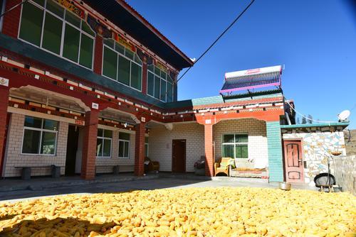 初夏的清晨,有隔夜晶瑩的露珠在花瓣上閃閃發(fā)光,迎接著朝陽?!皝韥韥恚钟筒瓒嫉购昧?,大家先到樓上喝茶,今天中午美酒佳肴管吃管飽哦!”36歲牧民來讓登真熱情的招呼著客人們?!袄?,先不織了,趕緊,去把那兩箱好酒找出來!”“對了,快打電話,把你哥也喊過來陪下客人些(客人們)!”……這“管吃管飽”的“好酒”和熱情的服務(wù)接待,正悄無聲息的向大家展示著改革開放40年來農(nóng)牧區(qū)的巨大變化。