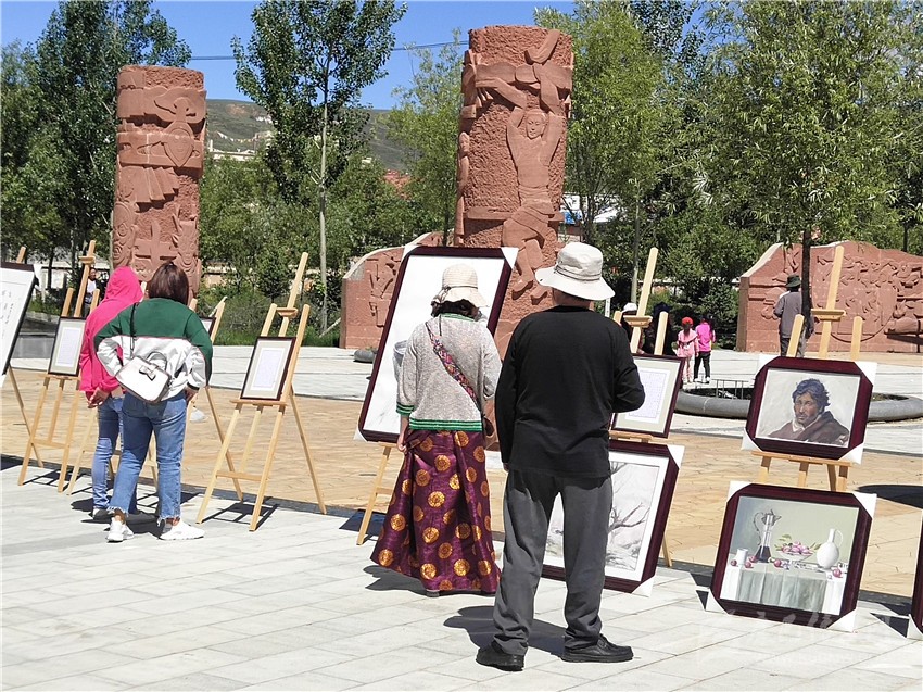 文藝展得到了廣大藝術(shù)愛(ài)好者的積極響應(yīng)、參與和支持,共征集到精美作品189件展出,其中書法作品60件、繪畫作品69件、唐卡作品60件。作品內(nèi)容廣泛、立意新穎、主題突出,既有藝術(shù)性又有紀(jì)實(shí)性,富有感染力和表現(xiàn)力。