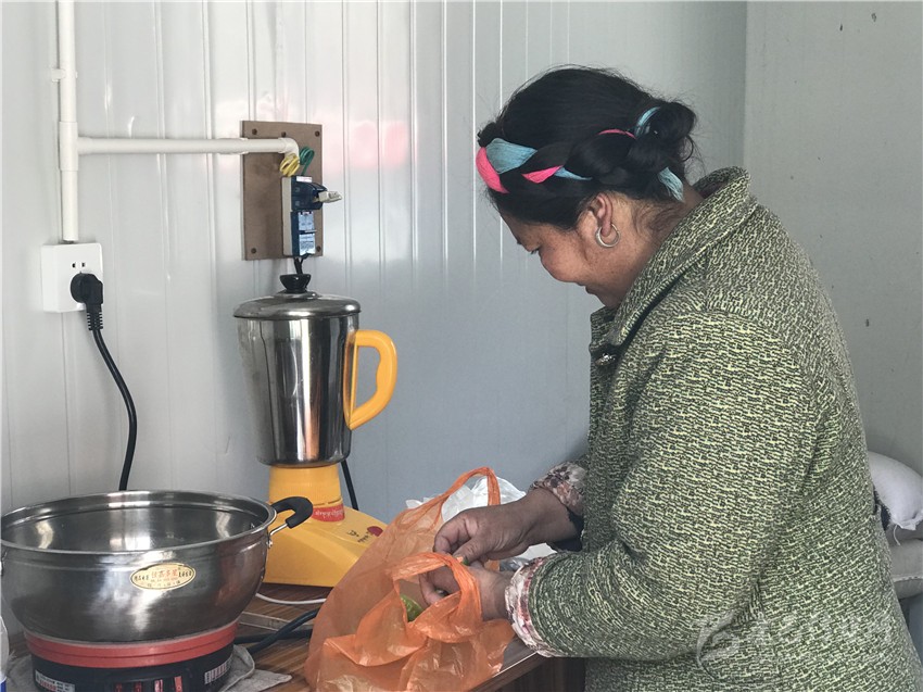 仁青卓瑪一家共四口人,分得農(nóng)戶四人房?!拔覜]想過板房條件可以這么好,有電有水,還有單獨干凈的廁所,對面就是洗澡的地方,在有些地方甚至比以前住的房屋更便利。”她邊說邊用抹布擦著灶臺上的油漬,“這里也是家啊,還是要收拾得干干凈凈的,新家新氣象嘛。”直到筆者離開,卓瑪還在自家的板房里忙碌著。