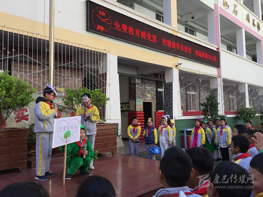 本網(wǎng)訊 為喚起植樹(shù)造林、綠化環(huán)境、美化生活的共同意識(shí),養(yǎng)成低碳環(huán)保生活習(xí)慣。近日,丹巴縣城區(qū)小學(xué)校利用周一國(guó)旗下講話為契機(jī),用小品的形式,開(kāi)展植樹(shù)造林活動(dòng)宣傳。