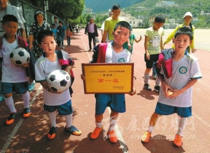 山里娃娃吃得苦、受得累、體能好、跑得快。通過(guò)集訓(xùn)體能、技藝和賽場(chǎng)對(duì)抗能力,球員在短時(shí)間里球技突飛猛進(jìn),接連取得優(yōu)異戰(zhàn)績(jī):去年6月,參加“2018年瀘定縣中小學(xué)生足球選拔賽”獲得了低段組第一名;去年7月,參加“甘孜州第三屆青少年校園足球聯(lián)賽”獲得了甘孜州東路片區(qū)足球賽低段組第一名。