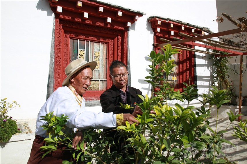 降巴曲增按照鄉(xiāng)村干部的要求,修建了亭子,種上了花卉、油橄欖、梨子、蘋果、櫻桃,品種多樣的水果又是一筆收入。流轉(zhuǎn)剩余的土地,種上了花菜、萵筍、卷心菜、茄子、青椒等蔬菜,不僅自己夠吃,還可以出售。常年駐扎在村上的農(nóng)技員羅思富天天都在村子里轉(zhuǎn),查看花卉和果蔬長勢(shì)情況,為村民提供技術(shù)保障。
