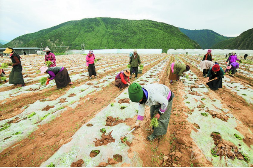 圖為農(nóng)牧民在千畝有機蔬菜、藥材種植示范基地務(wù)工。 楊成龍 攝