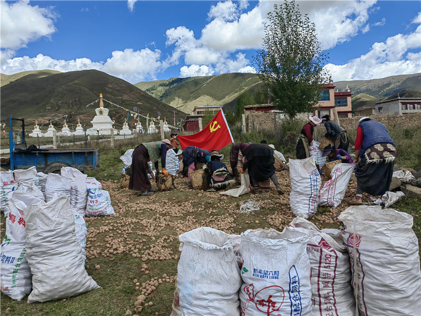 “現(xiàn)在黨的政策好啊,我們的種子都是國家發(fā)的,還有農(nóng)技員指導(dǎo)種植,現(xiàn)在土豆畝產(chǎn)基本都在4000斤左右,相比傳統(tǒng)自己留種,產(chǎn)量大幅提升。以前我們都是自給自足,現(xiàn)在留夠口糧還能將多余的土豆拿到市場(chǎng)上銷售。我們木拉的土豆口感、品質(zhì)都是最好,在市場(chǎng)上很暢銷,價(jià)格都在2元一斤以上,共產(chǎn)黨嘎真切(藏語:謝謝的意思)?!笨粗鴿M滿一袋的土豆,村民丁真降措擦了擦額頭的汗高興地說。