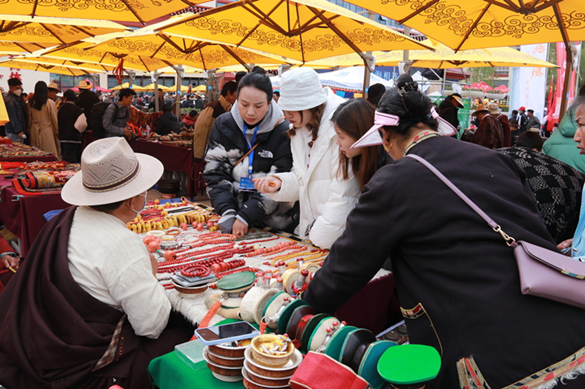 “這個(gè)銅鍋?zhàn)畹投嗌倌艹??”“這個(gè)藏刀上面的珠子是真的么?”……整整一天,羅布林廣場(chǎng)門庭若市、人聲鼎沸,詢問(wèn)聲、報(bào)價(jià)聲、討價(jià)聲充斥在市集各個(gè)角落。來(lái)自甘肅省甘南州卓尼縣的商人嘎藏在古玩交易博覽活動(dòng)展覽兩日,就達(dá)成26萬(wàn)元的交易額。據(jù)他介紹,從受邀參加活動(dòng)到現(xiàn)場(chǎng)展示,都有當(dāng)?shù)毓ぷ魅藛T聯(lián)系對(duì)接,不僅免費(fèi)提供展位,還有公安干警現(xiàn)場(chǎng)維護(hù)安全和秩序,更有當(dāng)?shù)卣刻焖蛠?lái)午餐、晚餐和飲用水,參加此次古玩交易博覽活動(dòng)很安心、舒心和放心。