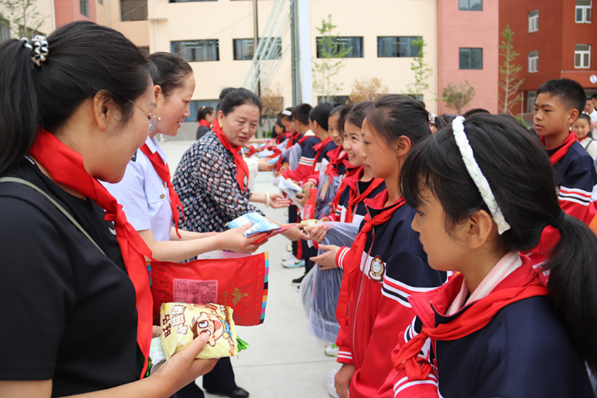 孩子們被節(jié)日前滿載愛心的禮物和祝福感動(dòng),他們?yōu)槲繂?wèn)組的叔叔阿姨戴上鮮艷的紅領(lǐng)巾,小手牽大手留下美好感動(dòng)的時(shí)刻。
