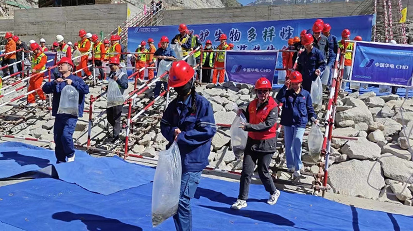 “今年放流的魚苗種類繁多,有四川裂腹魚、短須裂腹魚、長(zhǎng)絲裂腹魚、裸腹葉須魚、軟刺裸裂尻等,其中,裸腹葉須魚為中國(guó)瀕危動(dòng)物紅皮書‘易?!~類,四川裂腹魚為四川省重點(diǎn)保護(hù)魚類?!比A電金上葉巴灘分公司負(fù)責(zé)人說(shuō),為減少工程建設(shè)對(duì)魚類及水生生物的影響,公司建立了萬(wàn)里長(zhǎng)江第一級(jí)魚類增殖放流站,是國(guó)內(nèi)首個(gè)截流當(dāng)年開(kāi)展增殖放流的水電站,自2019年首次舉辦試驗(yàn)性增殖放流活動(dòng)以來(lái),累計(jì)放流106萬(wàn)尾特有珍稀魚苗。同時(shí)為進(jìn)一步推進(jìn)金沙江魚類種群恢復(fù)、水域生態(tài)環(huán)境的改善,公司還追加了1.7億元的環(huán)保投資,增設(shè)了一臺(tái)生態(tài)備用機(jī)組,提高運(yùn)行期生態(tài)下泄流量的安全度和保證率。聯(lián)合華中農(nóng)業(yè)大學(xué)開(kāi)展黃石爬鮡、姚氏高原鰍等遠(yuǎn)期放流魚種人工繁殖技術(shù)研究,采取分層取水技術(shù),有效改善水庫(kù)下泄水溫,為魚類繁殖生存提供適宜條件。