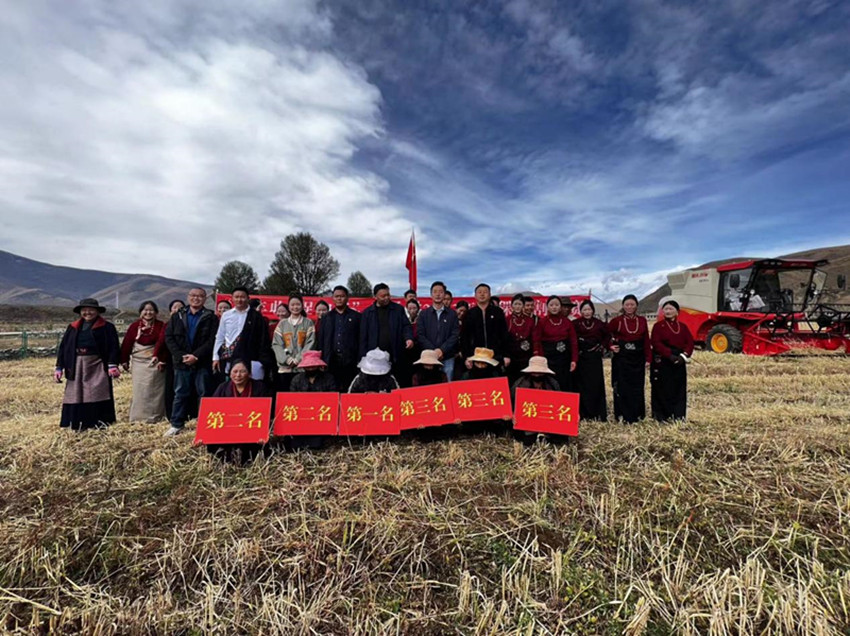 “開鐮!”10月12日上午,在寒桑村村委會主任洛絨群真的口令下,以“慶豐收 促和美”為主題的寒桑村2023年青稞收割比賽在該村多品種青稞試驗田內(nèi)拉開帷幕。