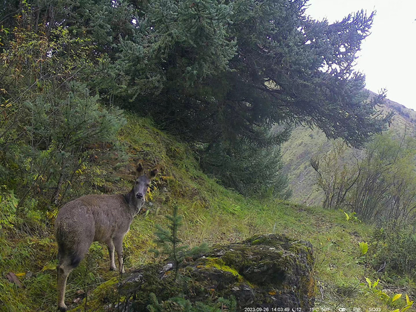 紅外相機(jī)影像資料顯示,一只金錢豹正走到石頭上眺望,一只棕熊媽媽正帶著幼崽經(jīng)過,一群白唇鹿在紅外相機(jī)前悠閑好奇的觀望……從肉食性、雜食性到植食性,野生動(dòng)物們?cè)阽R頭里的不時(shí)亮相,一定程度證明保護(hù)區(qū)內(nèi)生態(tài)系統(tǒng)功能健康,食物鏈結(jié)構(gòu)完整。
