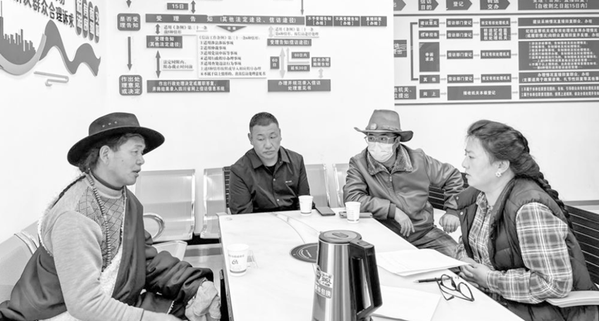 信訪工作千頭萬緒、情況復(fù)雜、處理難度大,面對各式各樣的信訪問題和矛盾糾紛,格桑曲珍從未退縮。哪里有矛盾糾紛,哪里就有她秉公調(diào)解的聲音。秉持著“干部多操心、群眾少揪心”的原則,她在推進信訪工作法治化和矛盾糾紛預(yù)防化解中展現(xiàn)擔(dān)當(dāng)作為,始終堅持以最飽滿的熱情投入工作,在接訪過程中,總是理直氣壯地講清法理、和風(fēng)細雨地講透道理、設(shè)身處地講明情理,用法治思維為老百姓解除心結(jié)。