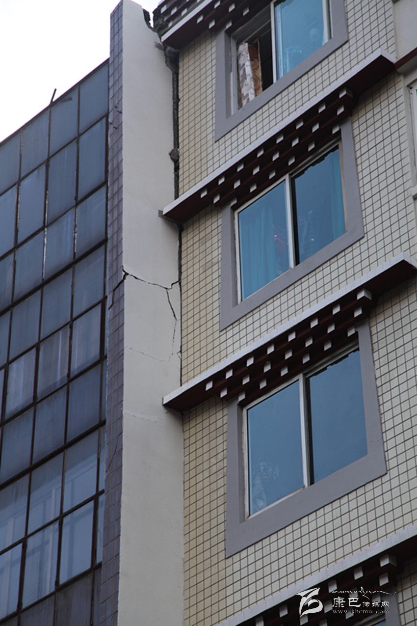 剛沖出報(bào)社不遠(yuǎn),記者就發(fā)現(xiàn)光明路光明小區(qū)附近的小巷中有一些外墻磚不規(guī)則地散落在地上,抬頭一看,發(fā)現(xiàn)一幢建筑的外墻已經(jīng)脫落了一大塊;在州統(tǒng)計(jì)局上側(cè),一幢建筑外墻出現(xiàn)了裂縫,過往的人們都在紛紛觀望,還有人在用手機(jī)拍攝。在西大街,有一幢建筑的陽臺出現(xiàn)移位,與主體建筑間形成了裂縫;在州人民醫(yī)院,門診部大樓出現(xiàn)了嚴(yán)重裂縫,大樓內(nèi)的人員已經(jīng)全部撤離。記者在采訪中發(fā)現(xiàn),此次地震使康定城區(qū)內(nèi)建筑出現(xiàn)了不同程度的外墻磚脫落、裂縫等,城郊有圍墻倒塌的情況發(fā)生,城區(qū)沒有出現(xiàn)建筑物倒塌的情況。