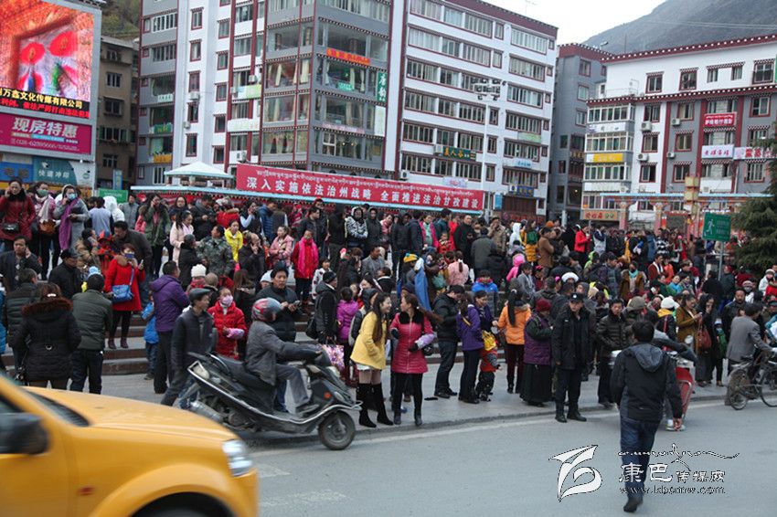 震后幾分鐘,康定市民便紛紛沖出家門,趕到城區(qū)開闊地帶。記者在將軍橋一帶看到,安雀寺外的小廣場上早已人山人海;標(biāo)注有臨時(shí)避難場所的情歌廣場一帶,數(shù)以萬計(jì)的市民已經(jīng)集聚在廣場;州群藝館外的街道也成了臨時(shí)避難場所,有的市民甚至把被蓋也搬了出來;在格薩爾酒店一側(cè),通往州委黨校的街道上站滿了焦急的人群;在城區(qū)最開闊的北門廣場,更是被人流擠得水泄不通。
