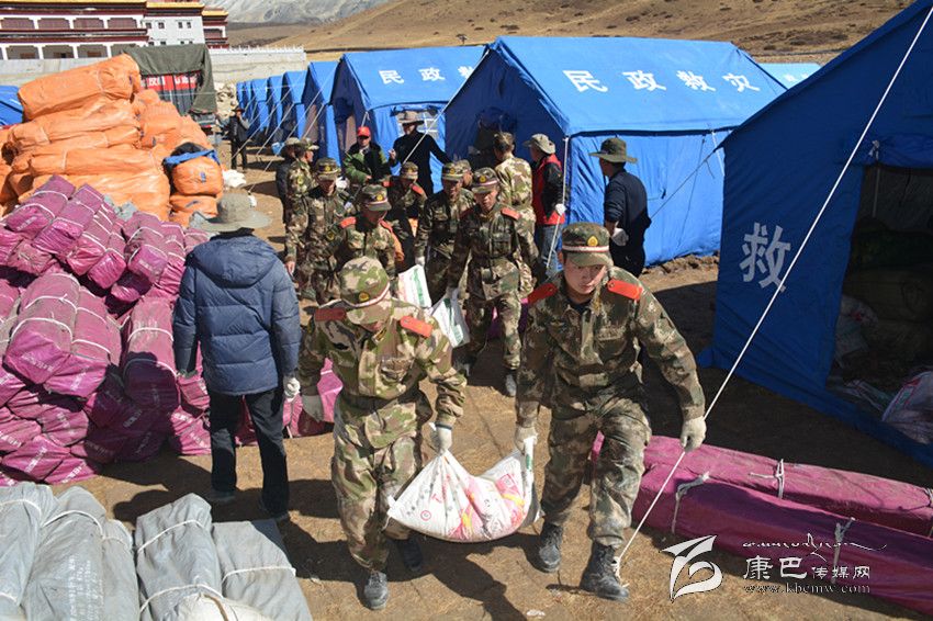 州森警支隊(duì)參謀長帶前指和康定中隊(duì)60人到達(dá)震中塔公鎮(zhèn)奪讓村和木雅祖慶學(xué)校。官兵看到校舍慘景和師生驚慌失措表情,忘記了奔波疲勞和自身安危,有序疏散30名師生、搶救學(xué)校2臺受損車輛,冒著零下近10度的低溫,連夜為師生搭建帳篷17頂、簡易廁所10個(gè),參戰(zhàn)官兵一夜未睡奮戰(zhàn)至黎明。23日8時(shí)10分,參戰(zhàn)的森警官兵又奉命轉(zhuǎn)戰(zhàn)至瓦澤鄉(xiāng)魚子西1、2、3村,為藏牧民轉(zhuǎn)移牦牛等牲畜200余頭,從危房中搬運(yùn)大米、青稞等糧食11.8噸,沙發(fā)、銅火爐、電視機(jī)等1680余件(套)。24日上午官兵又深入到瓦澤鄉(xiāng)麥巴村,為受災(zāi)群眾拆除危房2間、搬運(yùn)危房內(nèi)貴重物品10余噸,下午,抗震救災(zāi)指揮部又緊急調(diào)參戰(zhàn)森警官兵為沙德鄉(xiāng)運(yùn)送棉帳篷等救災(zāi)物資,支隊(duì)前指帶50人動用6臺車輛機(jī)動110公里到達(dá)沙德鄉(xiāng)政府,又連夜劃分四個(gè)行動小組為沙德鄉(xiāng)7個(gè)偏遠(yuǎn)村(組)將帳篷運(yùn)送到位,官兵一夜未睡將10余頂棉帳篷依次搭建到位。25日上午,官兵又接到塔公鎮(zhèn)扎西寺僧尼告急,60名官兵顧不上吃飯,緊急出動運(yùn)輸15頂棉帳篷,奮戰(zhàn)扎西寺5個(gè)安置點(diǎn),至晚19時(shí)才搭建完畢,官兵就座運(yùn)兵車?yán)锎蝽镄菡?6日上午,武警總部工作組看望慰問參戰(zhàn)一線官兵,官兵精神振作,按抗震救災(zāi)指揮部指示,60名官兵在聯(lián)指物資發(fā)放中心,搬運(yùn)裝卸棉帳篷、棉大衣、棉被等越冬衣物和礦泉水、大米、面粉、蔬菜等生活物資68噸。目前,60名官兵仍奮戰(zhàn)一線,雅江大隊(duì)、道孚大隊(duì)部分官兵在各自轄區(qū)展開震后自救互救行動。