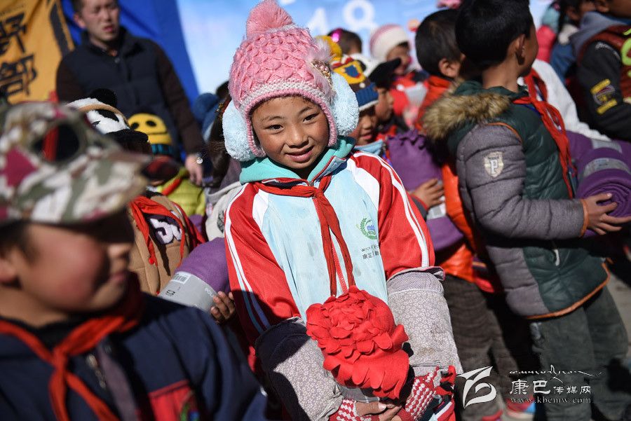課間,“你好,318”全媒體行隊員代表新華網(wǎng)向孩子們捐贈了100條紅紫兩色的防寒毛毯。康定縣委宣傳部長毛宇向新華網(wǎng)表達(dá)了感謝,并祝此次活動一路順利。