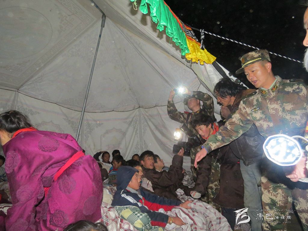 凌晨1時,在江巴村,60名官兵挨家挨戶搜救轉(zhuǎn)移群眾,連夜搭建救災(zāi)帳篷。“同志,我的小女兒拉姆找不著了,可能埋在房子里了……”澤仁阿巴急匆匆地拉著武警戰(zhàn)士的手求援,“你家在哪里?快帶我們?nèi)ィ?rdquo;未等四十歲的澤仁阿巴說完,官兵們奔向不遠(yuǎn)處的一堆倒塌的房屋??紤]到有人埋在下面,官兵們不敢用鎬刨用鍬鏟,在另一面墻上石片不停掉落的情況下,仍然紛紛撲下身子扒拉土石結(jié)構(gòu)的殘垣斷壁,最終在兩個木箱中間找到了已哭成淚人的小拉姆,所幸6歲的拉姆安然無恙。