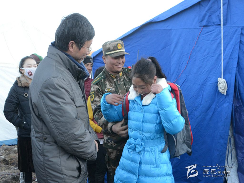 由于受此次地震影響,西康福利學(xué)校的孩子們已經(jīng)放假回到親戚家寄宿。塔公救災(zāi)一線的官兵們利用休息時(shí)間,向胡忠仔細(xì)打聽(tīng)5個(gè)孤兒的身高和臨時(shí)住址,大家主動(dòng)集資專門(mén)采購(gòu)了羽絨服、書(shū)包、文具和米面油等物資。10日下午,官兵們?cè)谖骺蹈@麑W(xué)校老師的陪同下,驅(qū)車百余公里,先后深入到塔公鎮(zhèn)江巴村、多拉一村、各日馬村、下馬龍村和朋布西鄉(xiāng)奪讓村,跨河溝、爬山坡,鉆帳篷、進(jìn)板房,提著新買(mǎi)的衣服、書(shū)包,扛著米面,逐一走訪這些孤兒所寄宿的家,勉勵(lì)他們?cè)诶Ь持凶詮?qiáng)不息,努力學(xué)習(xí),為自己的夢(mèng)想而頑強(qiáng)拼搏,并與孤兒所寄宿的親戚細(xì)心溝通交流,囑咐他們照顧好可憐的孩子,有困難找武警,大家齊心協(xié)力為孤兒創(chuàng)造一個(gè)溫暖的家,為孤兒的成長(zhǎng)成才盡最大的努力。