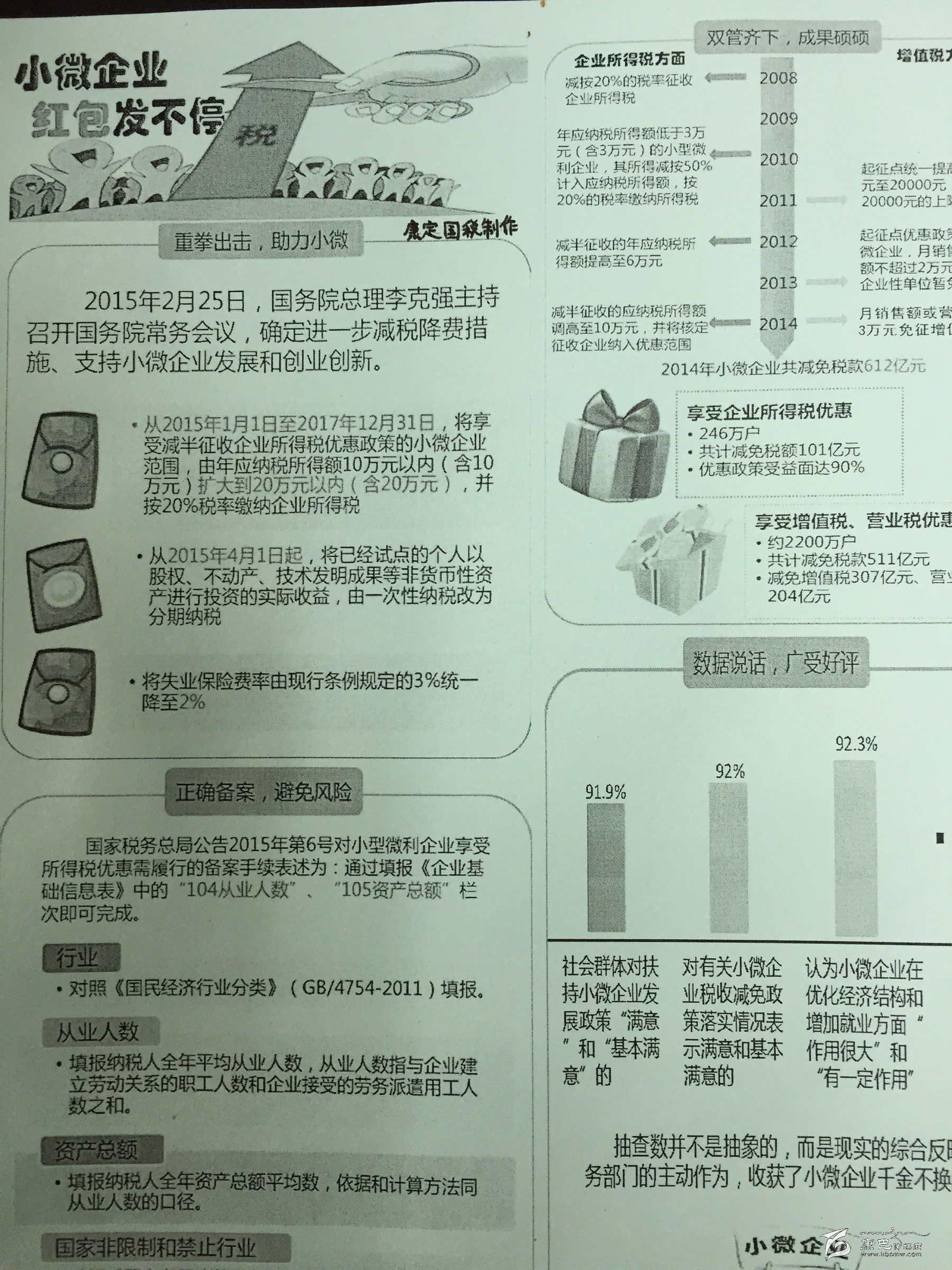 九龍縣國稅局倡導稅務人員和納稅人代表組建“小微企業(yè)納稅服務志愿小分隊”,大力宣傳落實小微企業(yè)稅收優(yōu)惠政策,使該局享受小微企業(yè)稅收優(yōu)惠政策的納稅人從124戶增加至133戶,享受面達到100%。