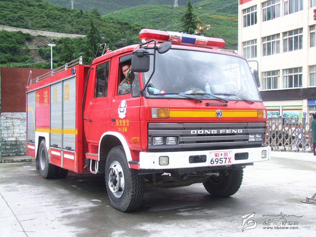 消防車在考場外待命。