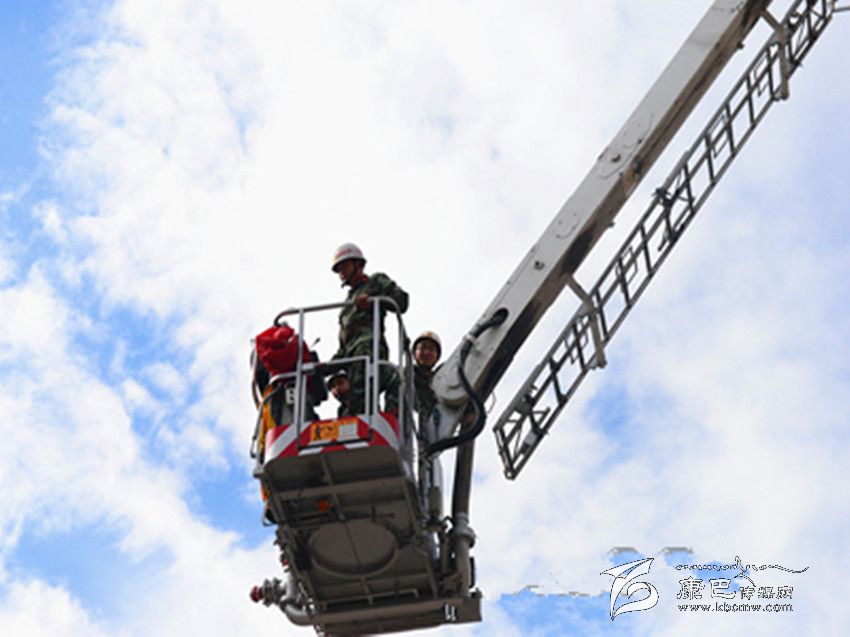 體驗(yàn)登高。DG-32C登高平臺消防車性能測試和維護(hù)保養(yǎng)工作完成后,在甘孜消防支隊(duì)司令部參謀長劉乾德和一名登高車駕駛員帶領(lǐng)下筆者親身體驗(yàn)了一次登高作業(yè)。按照操作規(guī)程,戴好防護(hù)頭盔,扎上綁有安全繩的防護(hù)腰帶,登高平臺臂正式啟動。駕駛員操作技術(shù)十分嫻熟,40秒后,登高平臺穩(wěn)穩(wěn)的停在了28米的高空。站在平臺上俯瞰著下方,一陣清風(fēng)刮過,平臺出現(xiàn)了輕微搖晃,當(dāng)時(shí)筆者十分緊張,手掌緊緊抓住了平臺上的防護(hù)欄。“高空作業(yè)出現(xiàn)這種情況屬于正常現(xiàn)象,心里一定要平靜,要相信消防員的專業(yè)技術(shù),也要相信消防裝備的安全系數(shù)”駕駛員對筆者說道。隨即,在駕駛員的操作下,平臺緩緩下降至地面,筆者頓時(shí)松了口氣,并向操作登高平臺臂的駕駛員表示剛才感覺十分驚險(xiǎn)。當(dāng)?shù)弥{駛員對DG-32C登高平臺消防車經(jīng)過專業(yè)的技術(shù)培訓(xùn),并具有3年多的駕駛及操作經(jīng)驗(yàn)時(shí),筆者頓時(shí)心生敬畏。
