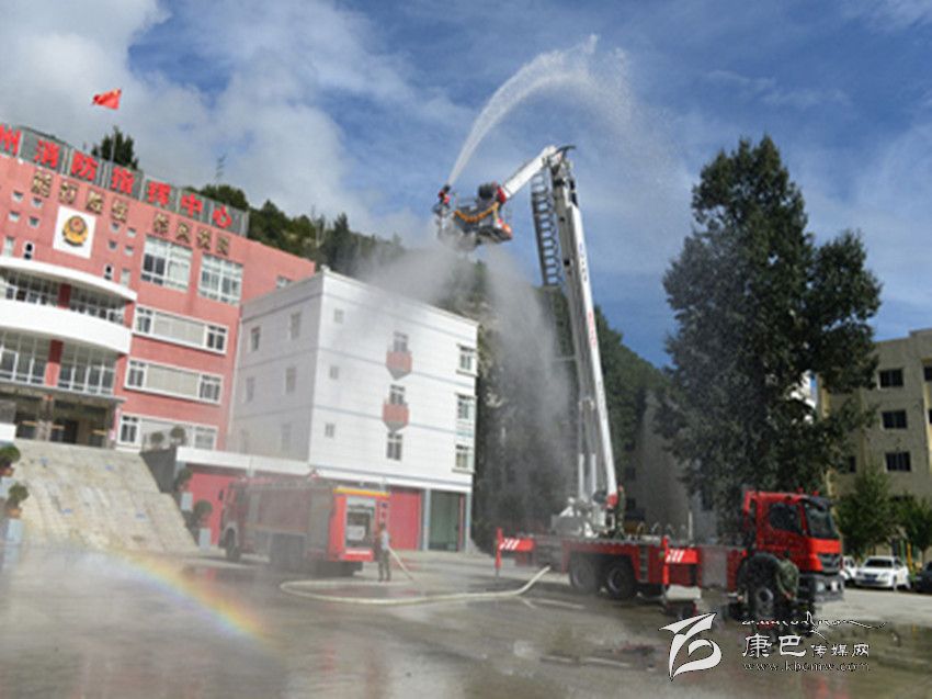 本網(wǎng)訊(劉國謙文/圖)9月8日上午,甘孜消防支隊(duì)操場衛(wèi)聳立著一道“銀色天梯”,筆者在現(xiàn)場目擊了 DG-32C登高平臺消防車的變形過程。隨著 4個(gè)支撐架的展開,車體被架離地面,登高平臺臂緩緩上升,如“擎天柱”般伸向云端。在兩名駕駛員的配合操作下,平臺頂端配載的水炮噴射出一條長長的水龍,隨著水壓漸漸加大,奔騰的水龍帶著一道彩虹劃過高空,成為云端深處一道壯觀的麗景。