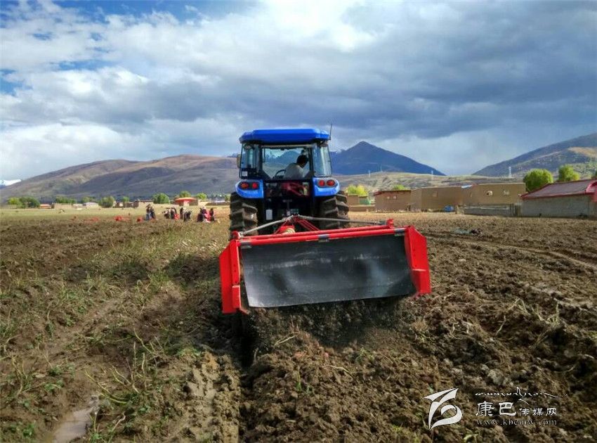 甘孜縣拖壩村馬鈴薯全程機(jī)械化示范基地機(jī)收現(xiàn)場。