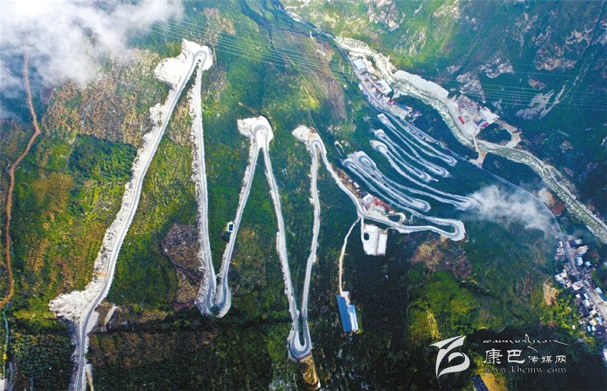 離開大渡河大橋往康定走,另一壯觀場景呈現(xiàn)眼前:為了隧道施工,一條耗資5400萬元、長8.9千米的施工便道,呈“之”字形從山腳爬升到山頂,足足有二十四道拐,酷似“史迪威公路”的二十四道拐。