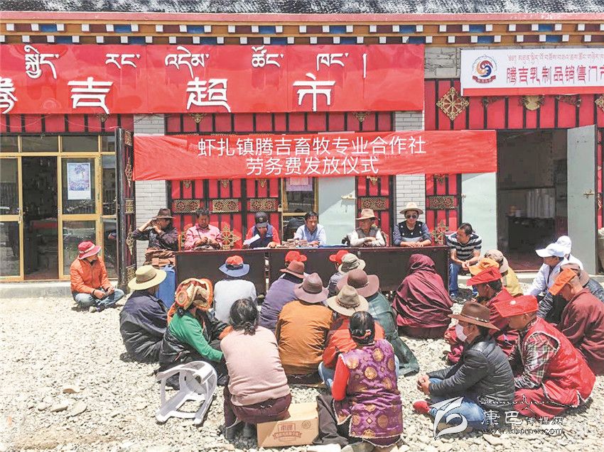 蝦扎鎮(zhèn)吉畜牧專業(yè)合作社勞務(wù)費(fèi)發(fā)放儀式現(xiàn)場。