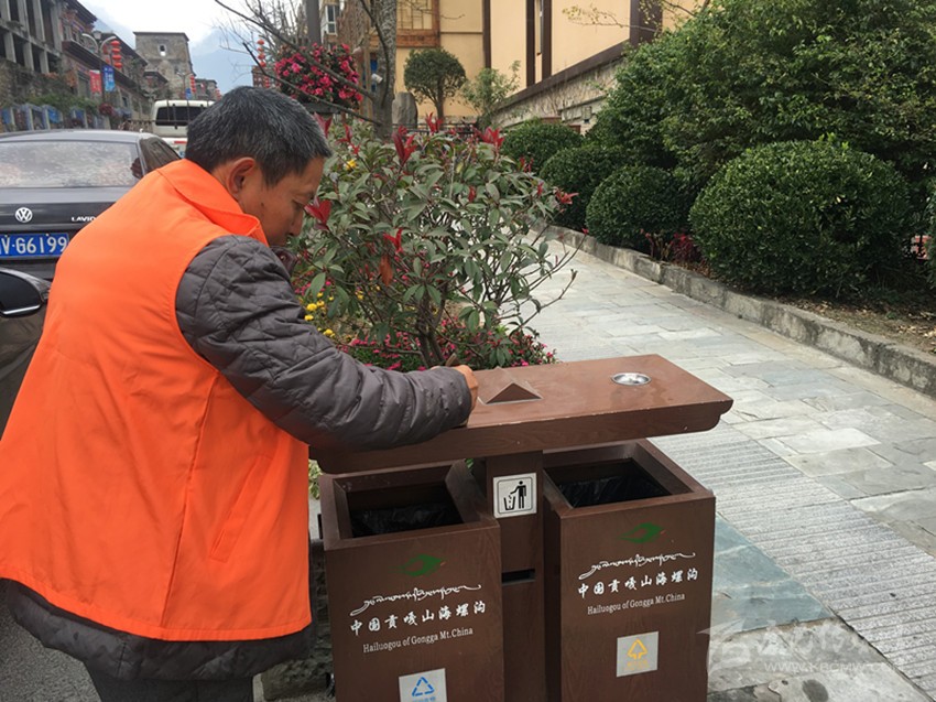 “現(xiàn)在海螺溝管理局的干部職工自己不亂扔垃圾,發(fā)現(xiàn)垃圾還會主動清理,你說我們還好意思亂扔垃圾,還好意思在店外亂擺攤嗎?”海螺溝一餐館的老板告訴記者:“我是海螺溝本地人,可以說是見證了海螺溝的變化。以前的海螺溝又臟又亂,到處都是垃圾,大風(fēng)一吹,空中飄的就是塑料袋、紙片和沙塵,管理局的干部來宣傳衛(wèi)生時沒有人聽,大家都是我行我素?,F(xiàn)在海螺溝進(jìn)行了風(fēng)貌改造,街道變干凈了,干部又帶頭搞衛(wèi)生,他們來宣傳和管理時我們還有什么說的。”