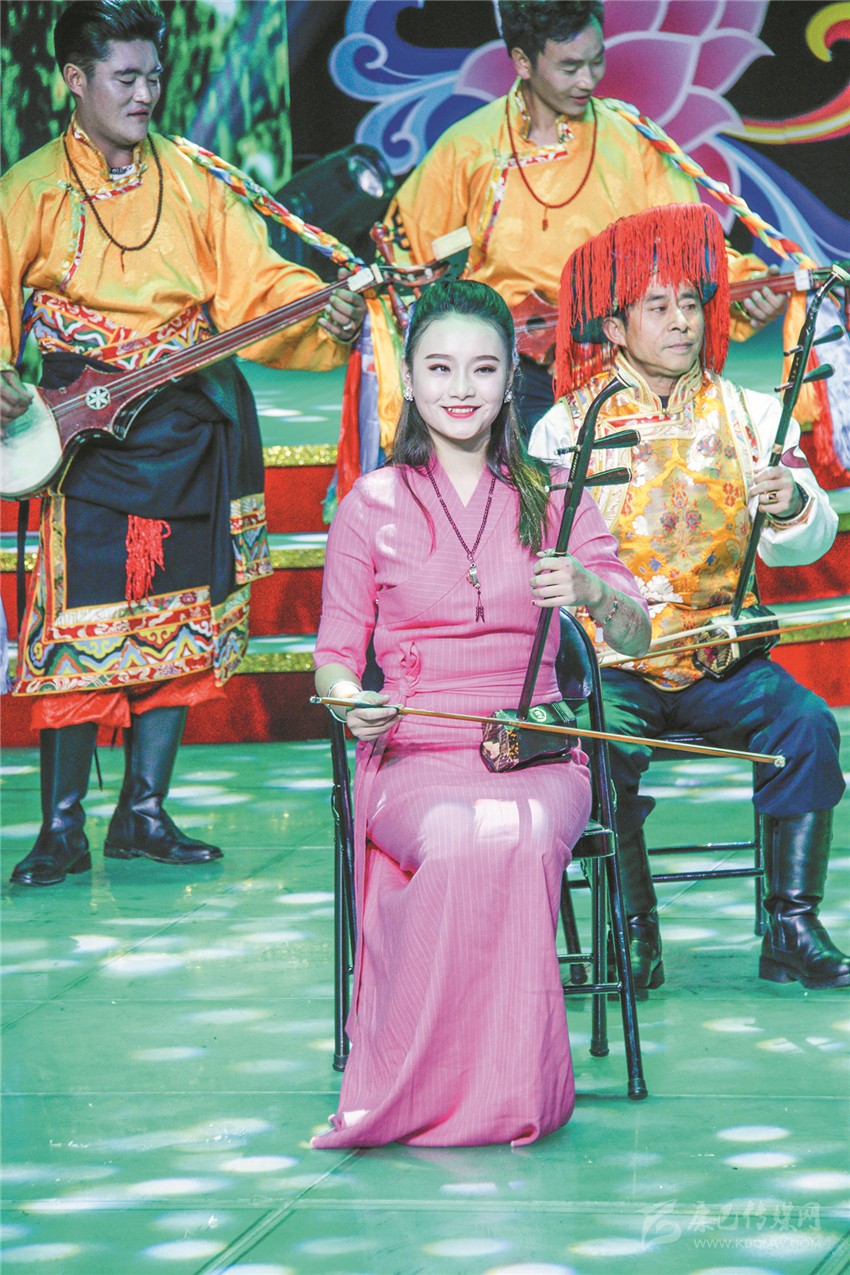 歌曲聯(lián)唱《百花爭艷》,是演出中第一個讓觀眾們大呼過癮的節(jié)目,年僅5歲的澤仁拉姆用一首藏族原生態(tài)歌曲《故鄉(xiāng)》,讓全場觀眾耳目一新。緊隨而來的藏族山歌《家鄉(xiāng)美》、漢族歌曲《和諧大家園》、回族歌曲《花兒與少年》、彝族歌曲《 尼雨尼杰》將音樂的魅力逐級顯現(xiàn),最后在經(jīng)典歌曲《愛我中華》中急速升華。6首歌曲風格各異,卻又一氣呵成,不僅集中展示了我州藏、漢、回、彝四個民族的藝術風采,還生動展現(xiàn)了我州各族人民其樂融融、團結進步的和諧面貌。