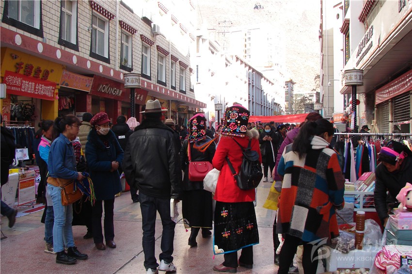 走在街上,一幅熱鬧的場景映入眼簾,熙熙攘攘的人群緩緩蠕動,來往行人大包小包的東西相互碰撞,市場內(nèi)叫賣聲、討價(jià)聲與商店歡快的音樂交織在一起,一大早街上就有幾輛工具車裝滿了飲料、糖果等副食品,老板與顧客在討價(jià)還價(jià)。家家樂超市收銀員一邊忙著收錢找零一邊對筆者說:“這段時間生意真好,老百姓來買的多,且量還不少?!眮淼讲耸袌龈菬狒[非凡,生食店、熟食店、糖果鋪前來購買年貨的顧客擠得滿滿的,大人小孩,僧人牧民各自選著自己想買的年貨,沉甸甸的年貨提在手上喜在眉梢。 (尹東云)