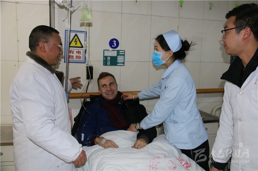 和國(guó)醫(yī)生正在給臨床病人檢查病情。一位來(lái)康定玩的俄羅斯小伙因患重感冒住進(jìn)了急救中心。正在輸液的他用比較熟練的中文激動(dòng)地告訴記者:“這里的醫(yī)生服務(wù)很好,他們過(guò)年都沒有休息,我得了重感冒,經(jīng)過(guò)治療以及在他們的細(xì)心關(guān)照下,我的病情好多了?!?/span>