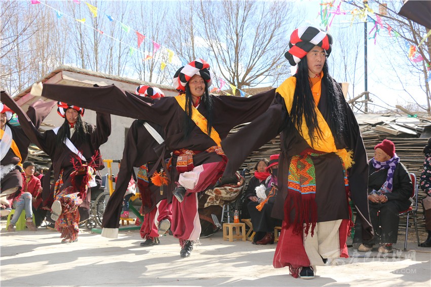 演出現(xiàn)場(chǎng),80歲的澤則瑪高興地說(shuō):“我們一直都是從電視上觀看全國(guó)各地舉辦的新春文藝表演,沒想到今年春節(jié)我們小小的一個(gè)村子也有了自己的舞臺(tái)?!贝竽瓿跻唬迕駛?cè)缭绯赃^(guò)飯,穿上表演服在村級(jí)文化活動(dòng)室等待10點(diǎn)鐘正式演出,活動(dòng)室外的觀眾們正翹首以盼。伴隨著歡快的歌舞聲響起演員們翩翩起舞,為村子增添了節(jié)日的歡樂。