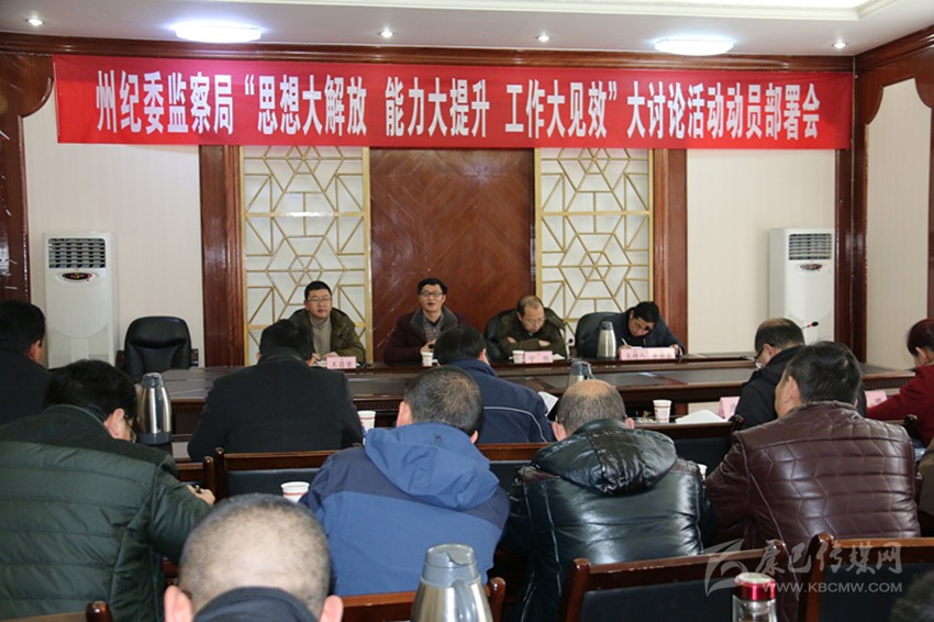 本網(wǎng)訊(記者 宋志勇)2月24日下午,州紀(jì)委監(jiān)察局召開“思想大解放、能力大提升、工作大見效”大討論活動(dòng)動(dòng)員部署會(huì)。會(huì)議專題傳達(dá)學(xué)習(xí)了州委召開的“思想大解放、能力大提升、工作大見效”大討論活動(dòng)會(huì)議精神和開展“思想大解放、能力大提升、工作大見效”大討論活動(dòng)實(shí)施方案,對(duì)全面找差距、挖根源,抓落實(shí)、重實(shí)效進(jìn)行了動(dòng)員部署。