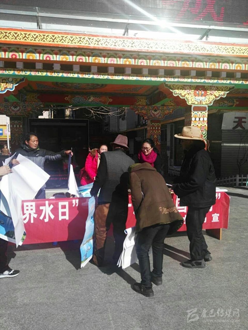為紀念第二十五屆“世界水日”及第三十屆“中國水周”,進一步增強全社會的水憂患意識和水法治觀念,營造濃厚的氛圍和良好的法治環(huán)境,3月22日,州、市水務(wù)局聯(lián)合在情歌廣場開展“世界水日”“中國水周”宣傳活動。據(jù)悉,本次宣傳活動的主題為“堅持綠色發(fā)展理念 全面推行河長制”。宣傳當(dāng)天接受群眾咨詢50人次,發(fā)放宣傳資料600余份。圖為活動現(xiàn)場。 (落讓拉姆 攝)