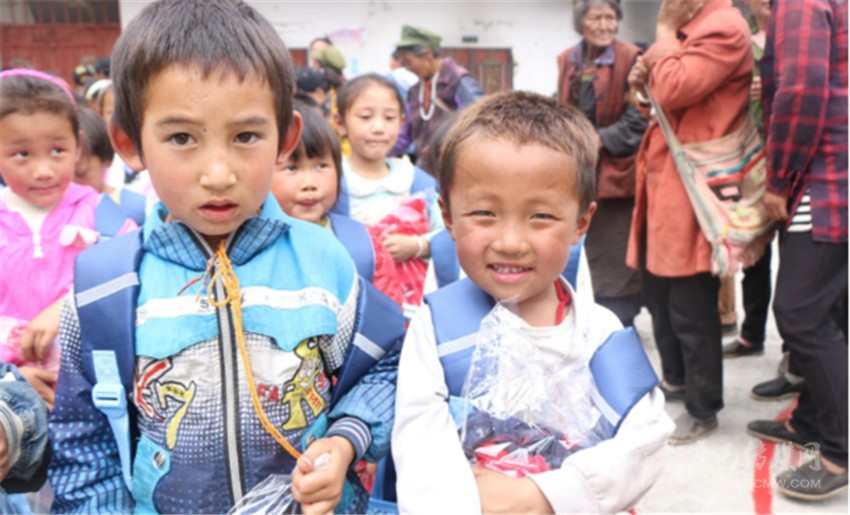 俄牙同鄉(xiāng)小學(xué)的孩子們收到志愿者送來的物資,大方的提出合影。
