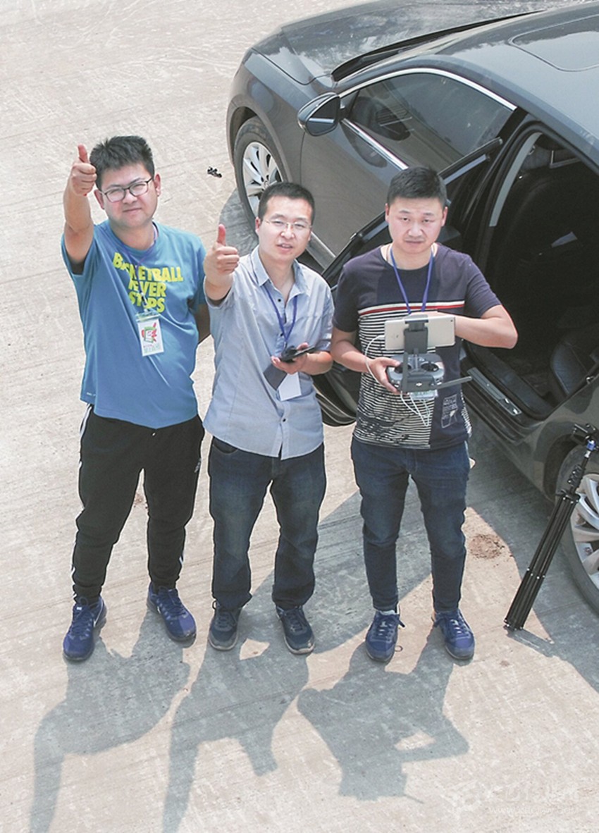 在航拍C11標(biāo)段時,無人機模擬汽車在高速上快速行駛,結(jié)果撞上了橫跨兩山之間的光纜,機翼也被撞出一個豁口。