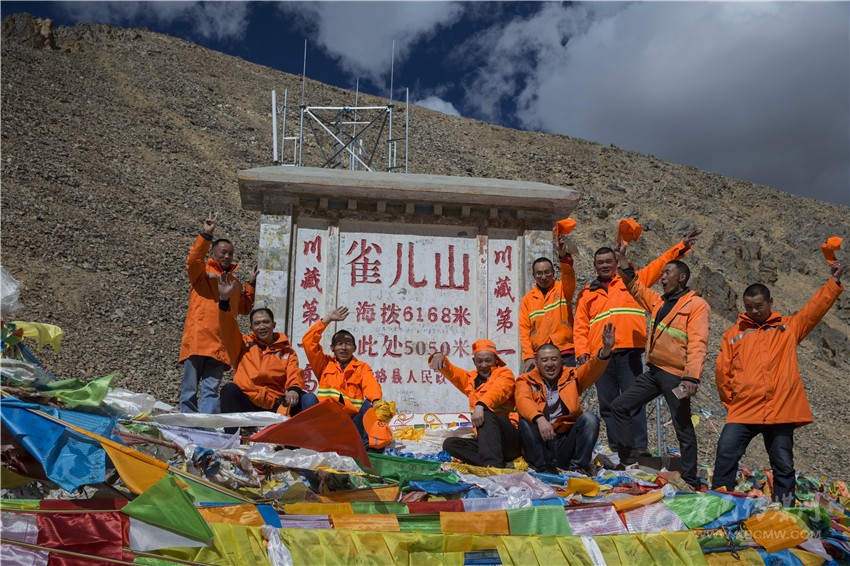 該做的活路做完了,9個人再一次來到山埡口那個立有標牌的地方,為他們每一個人拍下了一張紀念照,他們說雀兒山將不會再有道班房了,這張照片就是他們永遠的紀念。說完他們從懷中掏出才從山下買來的龍達,這是藏族人民驅(qū)災(zāi)祈福的信物,迎著呼呼的大風,揚手拋上了藍天。不知是誰發(fā)出了哭聲,于是9個人都哭了,9個漢子的哭聲在5050米的高度揮撒開來是何等的豪邁!