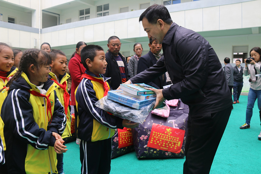 當天上午,“粵企代表為藏區(qū)困難群眾、貧困學(xué)生和留守兒童捐贈物資發(fā)放儀式”在康定市實驗小學(xué)舉行,廣東企業(yè)代表向該校20名留守兒童和困難學(xué)生發(fā)放了包括玩具、書包、圖書在內(nèi)的節(jié)日禮物,向康定市的30戶家庭困難的群眾發(fā)放了棉被、洗漱包、保溫杯等慰問品。