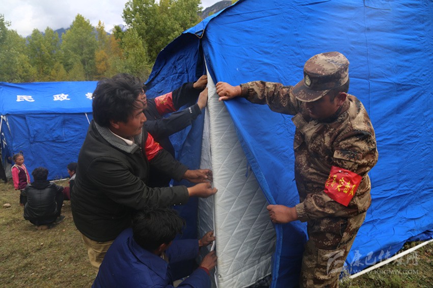 走進(jìn)炯青洞臨時(shí)安置點(diǎn)27號(hào)帳篷,見到村民康珠正在整理被蓋。她介紹說,縣里給每戶村民發(fā)了5床棉被,發(fā)放了礦泉水、方便面、餅干,發(fā)放了常用藥,還拉上了電,每天晚上能用上4個(gè)小時(shí)的電,我們睡了,還有黨員干部輪流值班?!包h和政府為我們想得很周到,讓我們吃得飽穿得暖還睡得安全?!?/p>
