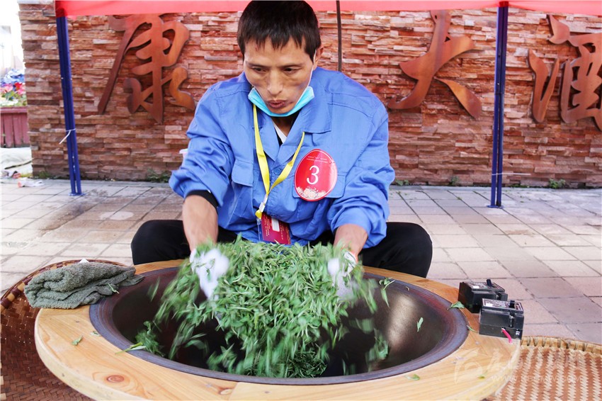 “茶鮮葉原料為統(tǒng)一的鮮葉原料,從發(fā)放茶鮮葉、進(jìn)行制茶到交付茶樣,全程控制在2小時(shí)以內(nèi)。選手們制作完成后,評(píng)委和專家將根據(jù)炒制出的茶葉外形、湯色、香氣、滋味及葉底等對(duì)選手進(jìn)行綜合評(píng)定?!必?fù)責(zé)評(píng)定的裁判長(zhǎng)這樣對(duì)記者說(shuō)。