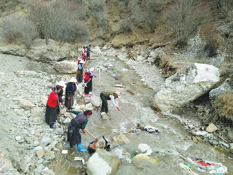 說(shuō)干就干,黃先明帶領(lǐng)駐村工作隊(duì)隊(duì)員和村兩委班子成員不畏嚴(yán)寒,首先把全村的道路、公共設(shè)施場(chǎng)地進(jìn)行了清掃,把道路兩邊的小土堆全部鏟平并種上花草,把村民房前屋后的柴火、廢料等重新清理并制定擺放標(biāo)準(zhǔn)。在河道整治中,黃先明帶領(lǐng)村干部沖在前面,對(duì)不容易清理到的垃圾,還跳到河里去撿。3月的高原還很冷,鞋子很快被交納河水打濕,但大家全然不顧?!包S隊(duì)長(zhǎng)都帶頭干,我們更要努力?!苯患{村村民巴登鄧珠說(shuō)。