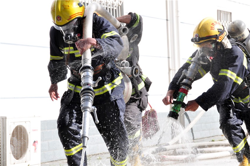 “快點(diǎn)、快點(diǎn)、再快一點(diǎn)?!鄙衔?時,爐城南路消防救援站消防員們身著15公斤戰(zhàn)斗服,帶著高壓水槍水帶,托著60公斤的人體模型,拼命奔跑,中隊長李勇不停地為隊員鼓勁?!皶r間就是生命,我們平時的訓(xùn)練就是在和時間賽跑,和死神賽跑。”李勇告訴記者,消防員對于體能要求極高,不僅要跑得快,還要負(fù)重跑?!拔覀儸F(xiàn)在的訓(xùn)練就是模擬火災(zāi)現(xiàn)場,消防員在滅火的同時,還要救出被困群眾。這樣的訓(xùn)練每天都會進(jìn)行,只有平時多流汗,戰(zhàn)時才少流血?!崩钣抡f。