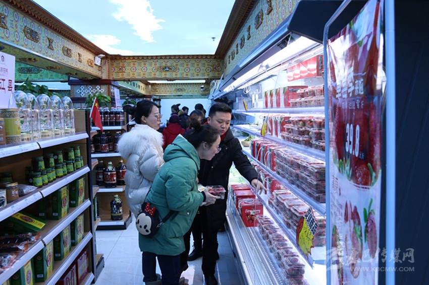“石渠草莓、理塘番茄、九龍茶葉、康定青稞餅······”12月31日,康定市圣潔甘孜扶貧超市內(nèi)人山人海,當(dāng)天“四川扶貧”產(chǎn)品迎春年貨大集甘孜分會(huì)場(chǎng)活動(dòng)在此拉開帷幕。來自全州18個(gè)縣(市)157家企業(yè)、合作社生產(chǎn)的723種“圣潔甘孜”優(yōu)質(zhì)農(nóng)特扶貧產(chǎn)品吸引眾多市民前來購買。