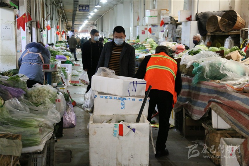 3月14日上午8點(diǎn)以前,龔學(xué)東再次深入攤位逐一檢查,確保市場(chǎng)全體商戶除了對(duì)各自店面的掃除、保潔和消毒外,還對(duì)諸如公廁、水池、垃圾桶、停車(chē)場(chǎng)等公共區(qū)域以及家禽水產(chǎn)售賣(mài)點(diǎn)、下水道、上下樓梯等重點(diǎn)部位,開(kāi)展“零死角”全覆蓋的衛(wèi)生環(huán)境集中整治。對(duì)此,龔學(xué)東解釋說(shuō):“郭達(dá)菜市地處城區(qū)核心區(qū)域,人口流動(dòng)量大、安全隱患不小、防控壓力倍增,齊抓共管做好病媒生物防制措施極其必要,而全面提升攤主衛(wèi)生意識(shí)、保障公共區(qū)域清潔消殺、減少細(xì)菌病毒滋生,就是最為有效有力的抓手。”
