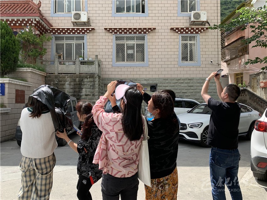 圖為康定市民正在觀看“日環(huán)食”。