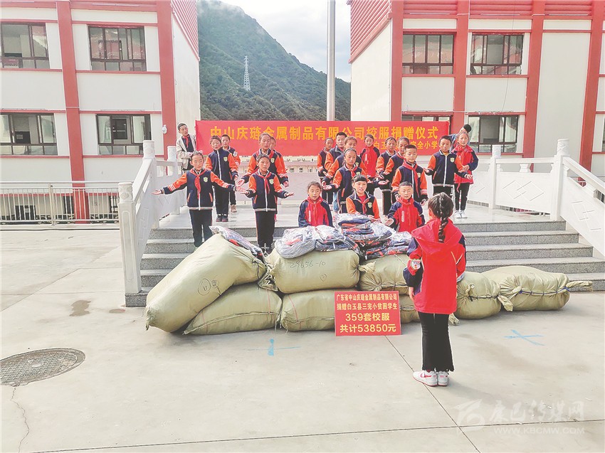 本網(wǎng)訊 9月8日上午,廣東省中山慶璉金屬制品有限公司向白玉縣第三完全小學(xué)捐贈了359套校服,總價值約53850元。圖為學(xué)生代表現(xiàn)場演唱歌曲《聽我說 謝謝你》,表達對愛心企業(yè)的感謝。