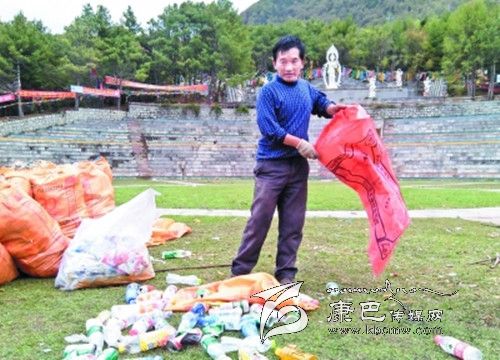 在接受記者采訪時跑馬山旅游開發(fā)有限公司董事長昂洛正在跑馬山跑馬坪和公司員工一同清理垃圾,昂洛說:“對于每年四月八后的‘垃圾’問題我真的很無奈,也很難過。跑馬山的景區(qū)規(guī)模有一定的局限性,每一次接待游客不能超過一萬人,要不硬件設施設備、安全隱患,當然也包括環(huán)境衛(wèi)生都會出現(xiàn)問題。四月八這一天有一點特殊,這是一個當?shù)氐拿褡屣L俗節(jié)日,每到這一天都會有很多市民上山祈福,而且景區(qū)當日不收門票。據(jù)不完全統(tǒng)計今年陸續(xù)上山的游客達到了3萬人以上,在某種意義上是超負荷了。景區(qū)也有載客量,硬件設施不夠用,也不能完全責怪游客亂扔垃圾,人多了景區(qū)的垃圾桶自然不夠用。傳統(tǒng)的四月八康定本地居民本來就有野餐的習慣,這是一種習俗,我們不能打破。吃東西當然就會留下大量的垃圾,不經(jīng)意就會造成垃圾遍地的場面。”