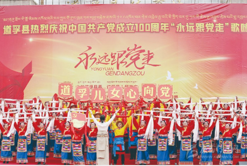 本網(wǎng)訊 “太陽啊霞光萬丈,雄鷹啊展翅飛翔,高原春光無限好,叫我怎能不歌唱……”6月26日,一曲《翻身農(nóng)奴把歌唱》的深情演唱,拉開了理塘縣慶祝中國共產(chǎn)黨成立100周年、2021年“高城兒女永遠(yuǎn)跟黨走”千人大合唱活動(dòng)的序幕。